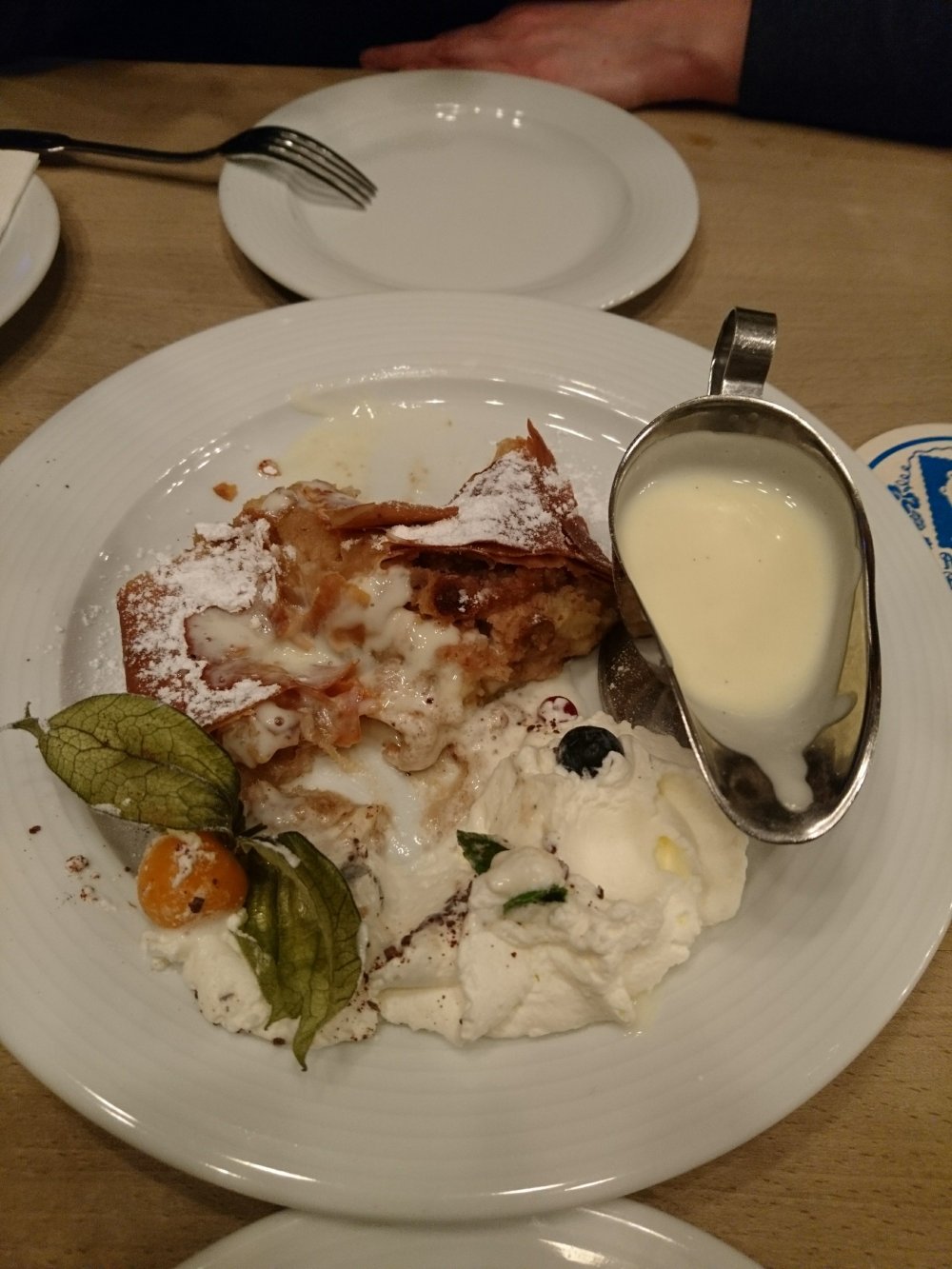 su tarta de manzana… muy rica… tampoco muy dulce….