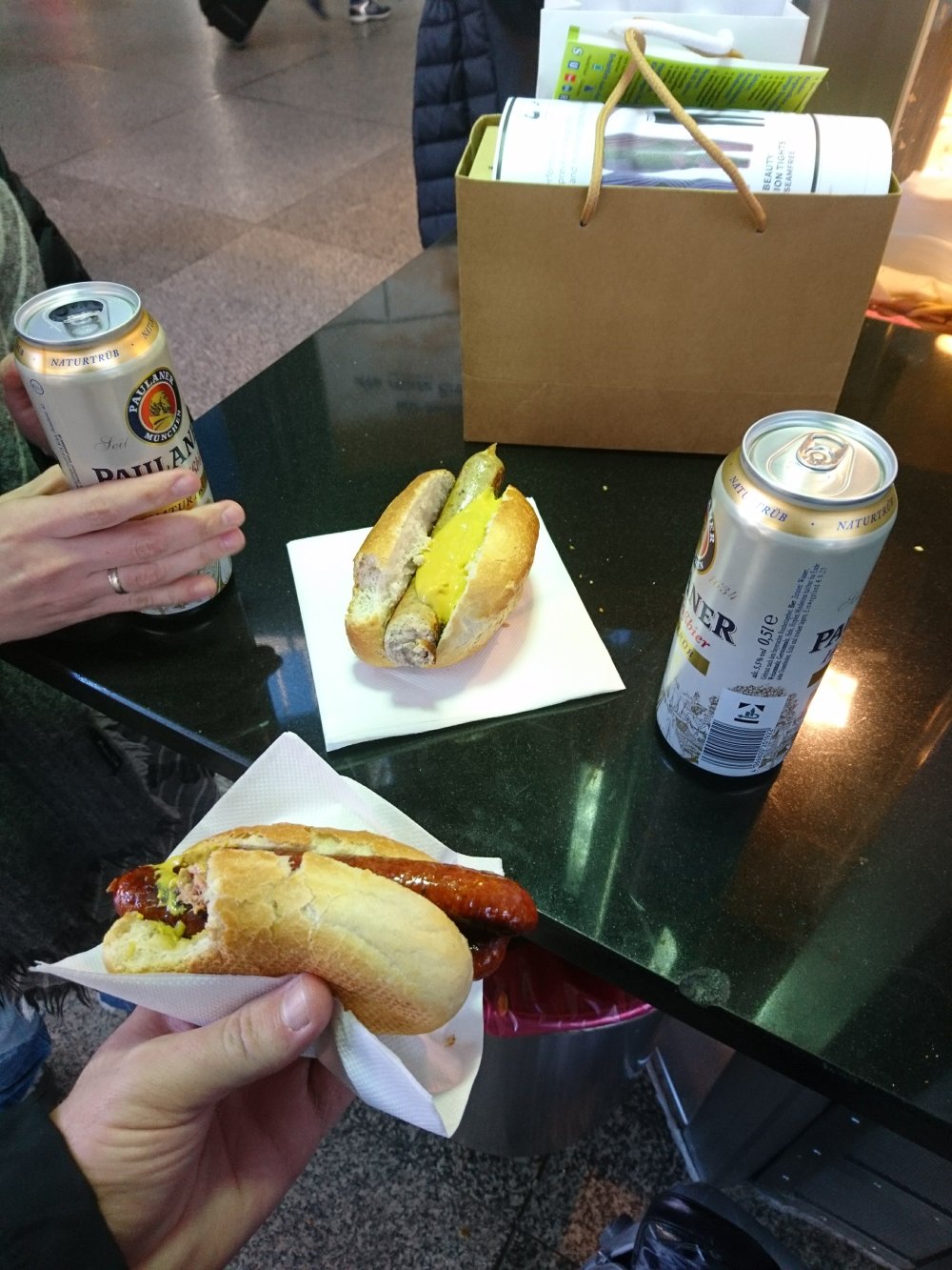 En fin, parece que no hay otro tipo de comida, pero aqui es muy popular y las cadenas de fast food tipicas, tipo Burguer King estan vacias, frente a un bocadillo de salchichas y una cerveza (de fabricacion casera)…