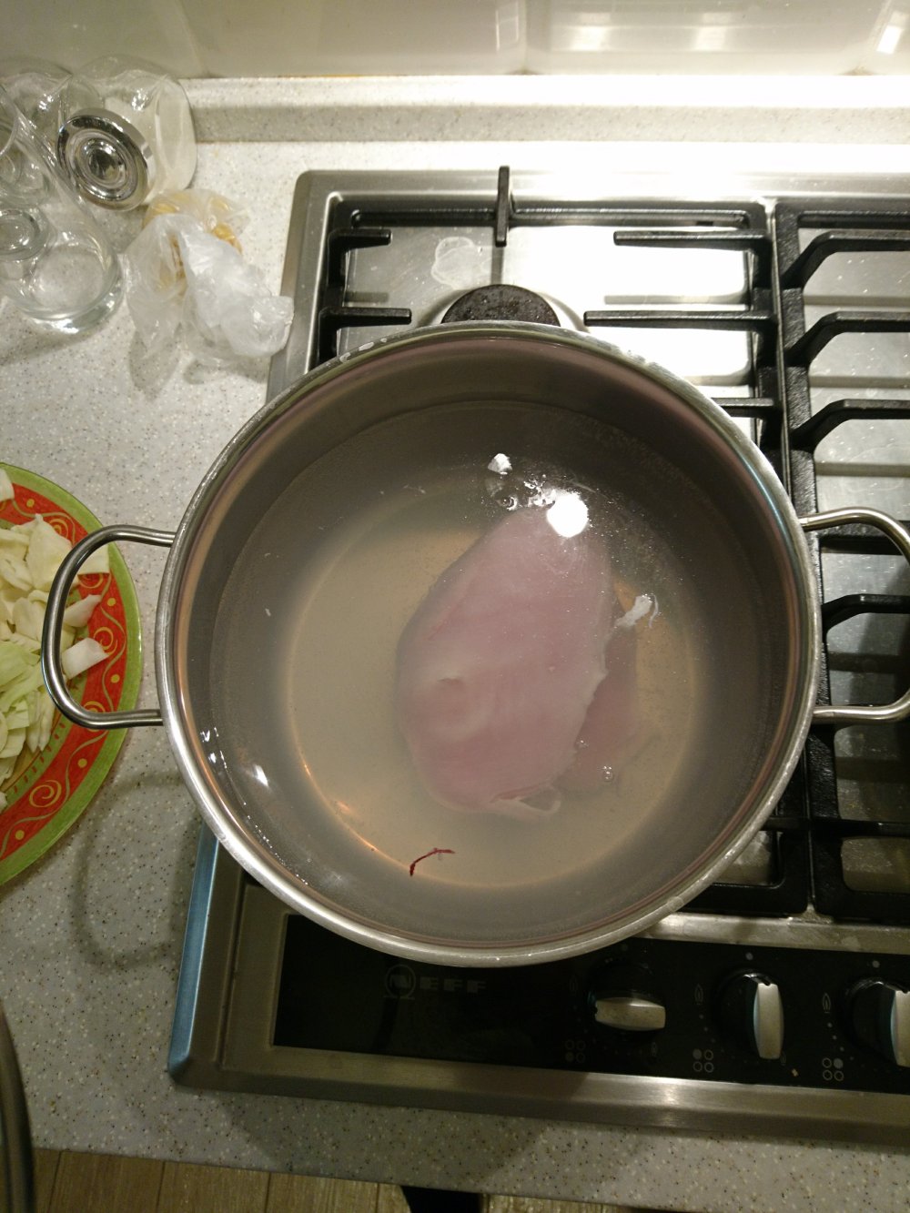 1) Se pone una pechuga a cocer