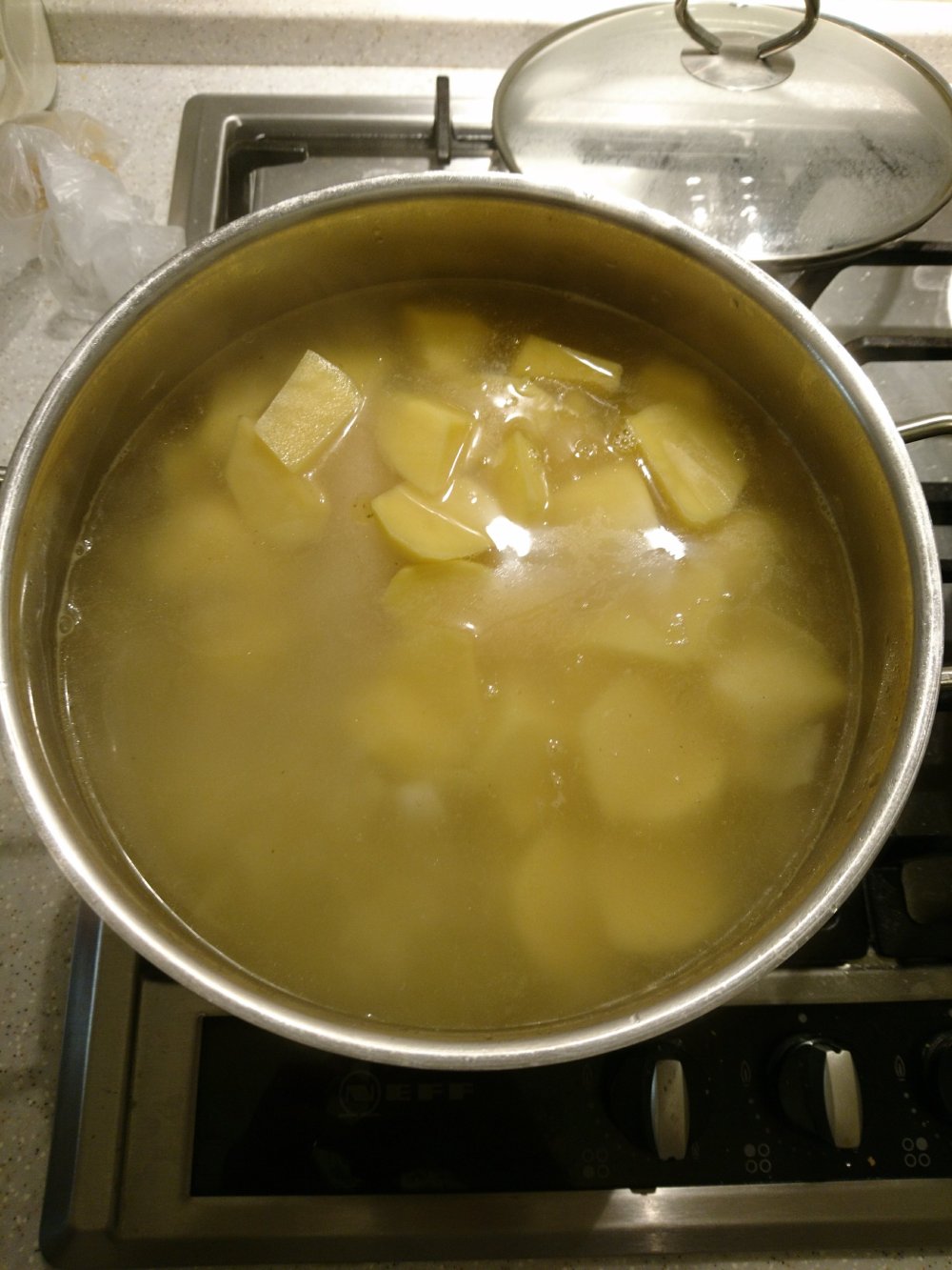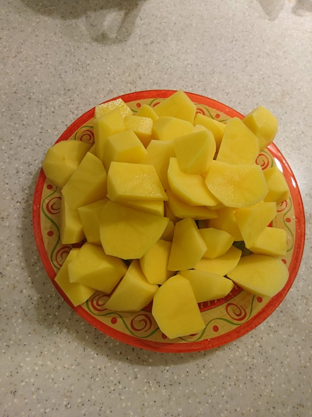 5) Se pelan las patatas, se trocean y se vierten a la olla