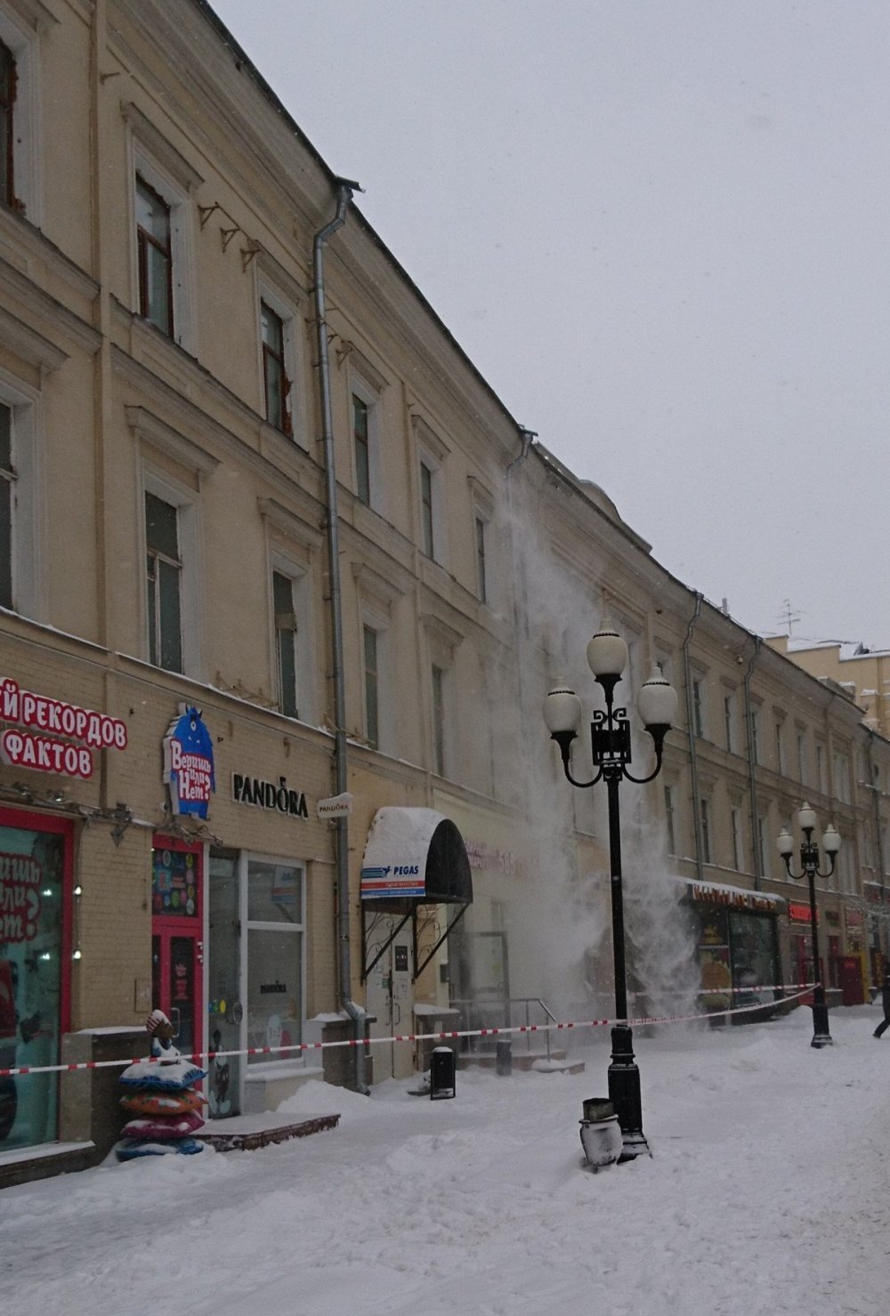 Entre las estalactitas de hielo colgando de los canalones y la posibilidad de que se deslice un «alud» de nieve de las cubiertas, todo Moscu se baliza señalizando por donde no puedes pasar… es peligroso porque no solo cae nieve, caen trozos de hielo…