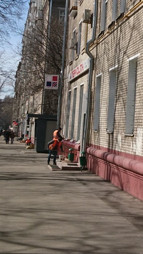 Ya lo puse el año pasado… en cuanto desaparece la nieve se aprovechan los dias soleados para embadurnar Moscu con pintura… hay que impermeabilizar todo… los bajos de los edificios y cualquier elemento metalico… asi que aqui la primavera tiene un olor especial!!! 😀 😀 😀