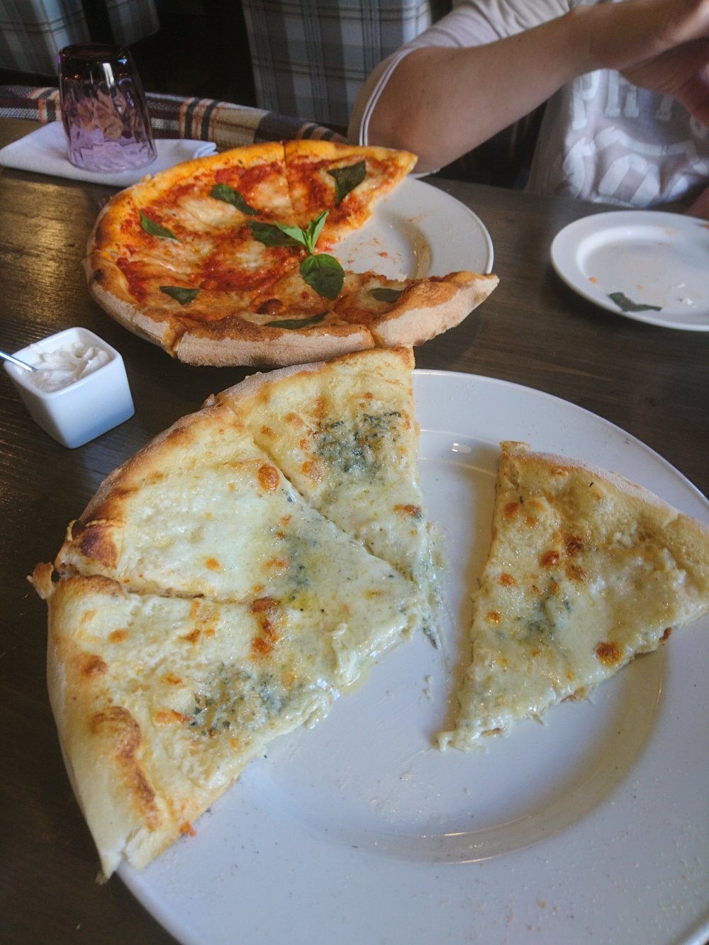 Asi se llama esta cafeteria, donde comemos wok… pero esta vez cambiamos a pizza (en horno de piedra, y al parecer con queso sin «plastificar»)