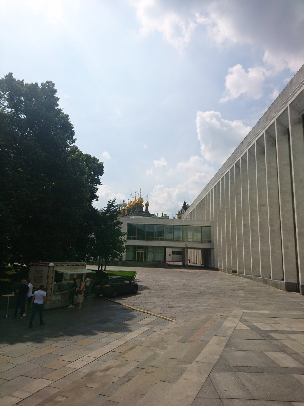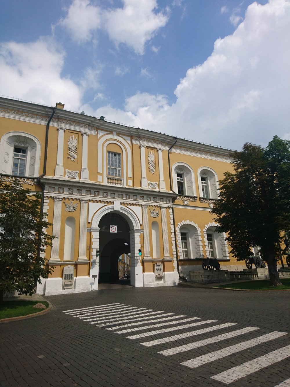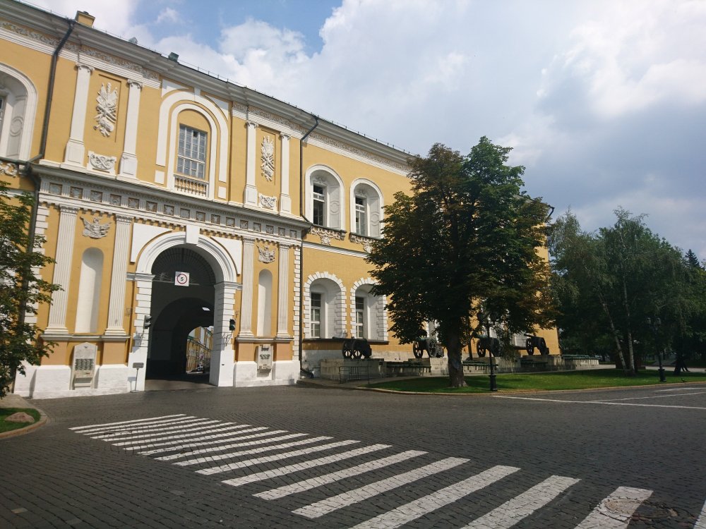 Nada mas entrar en el Kremlin y por motivos de seguridad te piden «amablemente» (a nosotros nos estuvieron pitando como unos 2 minutos hasta que nos dimos cuenta que era a nosotros…) que dejes de caminar por la calzada y entres en la acera (no es que haya coches, es que en frente esta el edificio de los Arsenales, hoy es un edificio administrativo y no te dejan acercarte)